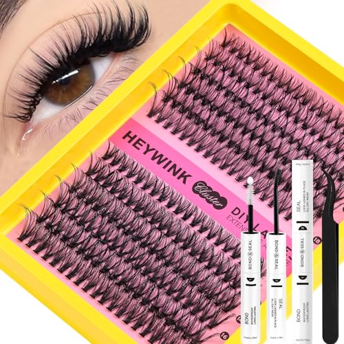 HEYWINK Lash Extension Kit DIY Lash Clusters Eyelash Extension Kit, 10-18mm 30D 40D Individual Lashes Kit Natural Lash Clusters with Lash Bond and Seal, Lash Tweezers for Beginner(30D+40D 10-18MM Kit)