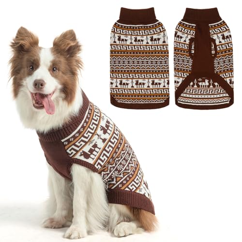 SCENEREAL Turtleneck Dog Sweater for Small Medium Large Dogs Girls Boys, Knit Pet Pullover Puppy Clothes Cold Weather Coats, Holiday Outfits Sweatshirt for Christmas, Khaki ML
