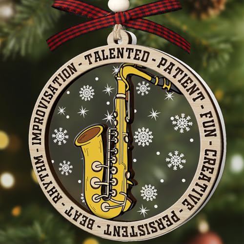 GOSBLUE Saxophone Ornaments for Christmas Tree, Saxophone Ornament 2 Layer Wood & Acrylic Decoration, Sax Keepsake Decor 2025, Gifts for Sax Lovers, Saxophonist, Music Lovers, Saxophone Teacher Gifts.