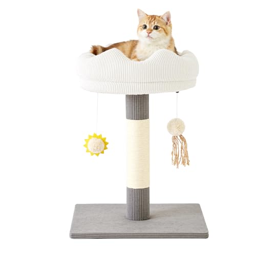 Gardner Pet 20" Cat Tree, Solid Wood Small Cat Tree, Cat Scratching-Posts & Hanging Toys, Removable Cat Bed, Compact Cat Tower Perch for Kittens(Grey, Circle-Corduroy)