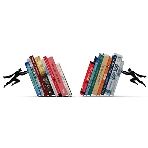 Artori Design Book Ends to Hold Books Heavy Duty - Hidden Metal Bookends for Shelves Desk - Bookend Book Holder for Home Decorative - Gift for Book Lovers and Home Décor (Book&Hero - Set of 2)