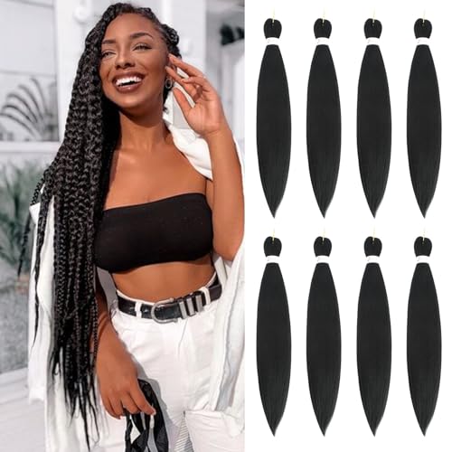 Braiding Hair 36 Inch 8 Packs Braiding Hair Pre Stretched Long for Twist or Box Braids Natural Black Synthetic Hair Extensions for Crochet Braids Hot Water Setting Soft Yaki Texture(36Inch,1B)