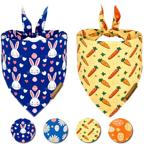 Raisingwell Easter Dog Bandanas 2 Pack, 4 Pattern Reversible Holiday Bandana for Boy and Girl, Premium Durable Fabric, Spring Triangle Scarf for Small to Medium Breed Dogs (Small)