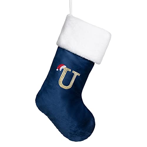 Beyond Your Thoughts Personalized Embroidery Monogram Initial Human Christmas Stockings 1 Pack Durable Christmas Ornament Bag for Family Decorations Blue Letter U