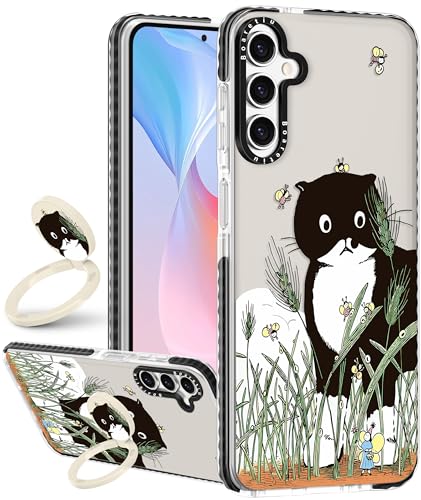 Boaretiu Cute Kawaii for Samsung Galaxy S25 Case with Stand - Fashion Cool 360° Rotate Ring Holder Kickstand Black Cat Bee for Women Girls Boys Teens Girly for Galaxy S25 Case