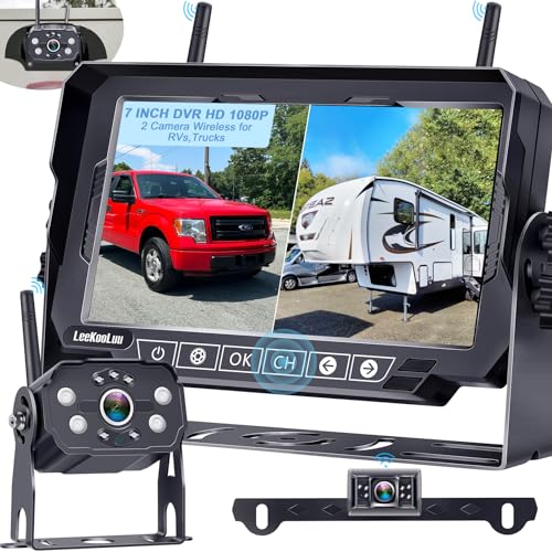 Dual RV Backup Cameras Wireless - Ease Install Plug-Play Recording HD 1080P 7'' Touch Key Monitor Trailer Truck Rear View Cam Night Vision Signal No-Delay 4 Channels for Furrion Pre-Wired Mount