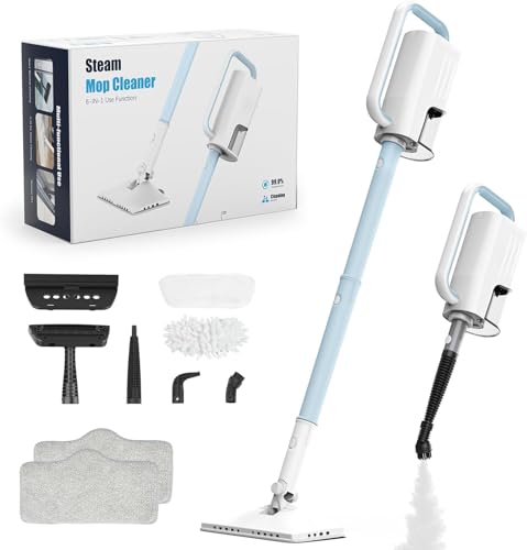 7-in-1 Steam Mop, 1200W Rotated Steam Cleaner for Home, 2 Modes, 400ML Removable Tank, 23FT Cord, 2 Washable Pads, Multi-Surface Steamer for Hard Floor, Laminate Floor, Tiles Cleaning (Cyan Blue)