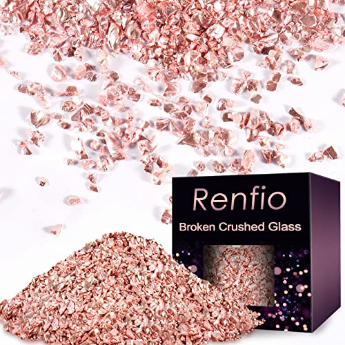 Renfio Broken Crushed Glass Glitter Shards 2-4mm Irregular Small Metallic Chunky Chips 3.5 Oz (100g) High Luster Craft Sequins Gravel for DIY Phone Case Geode Resin Art Coasters Ornament - Rosy Gold