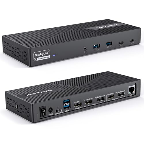 WAVLINK USB C Docking Station 3 Monitors (4K@60Hz), Displaylink Laptop Docking Station with 100W PD Charging for M1/M2/M3/M4 Mac/Windows -USB C (3 HDMI, 2 DP, 6 USB Ports, 160W Power, LAN, Audio).