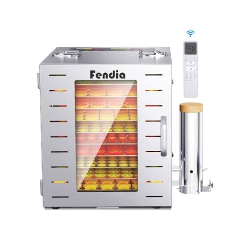 Food Dehydrator for Jerky, 10 Stainless Steel Trays, 1000W Fruit Dehydrator, 24H Timer and 194°F Temperature Control, Overheat Protection, Food Dryer for Jerky, Herbs, Fruit, Dog Treats, Remote