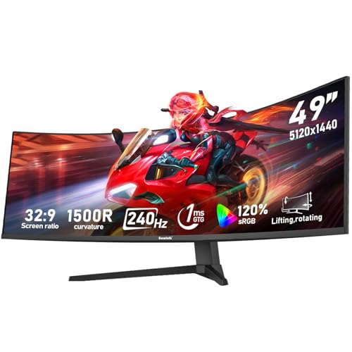 Gawfolk 49 inch Ultra-Wide Curved 1500R Gaming Computer Monitor, DQHD(5120×1440), 240Hz, 1MS, FreeSync, 120% sRGB, Height Adjustable PC Screen, HDMI2.1 & DP1.4, Compatible Wall Mount 100*100mm-Black
