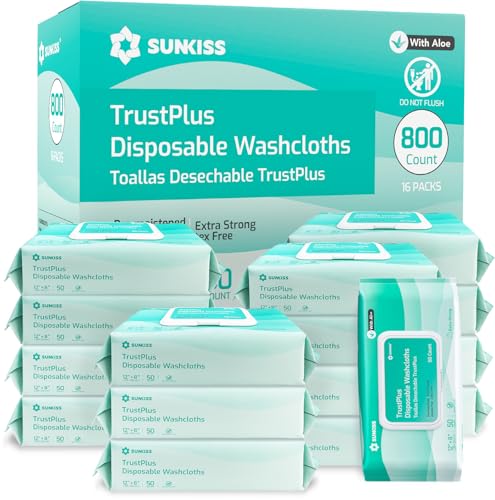 SUNKISS Trustplus Wet Wipes for Adult No Rinse, Extra Large 8”x12” Body Cleaning Washcloths for Elderly Incontinence & Cleansing, Unscented, 800 Count (16 Packs of 50)