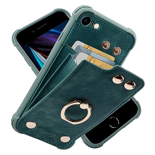 PYTWOPY Wallet Case Compatible for iPhone SE 2022/2020,iPhone 7/8 with Card Holder,Shockproof Phone Cover Supports 360°Rotation Ring Stand and RFID Blocking for iPhone SE2/SE3/7/8,Blue Green