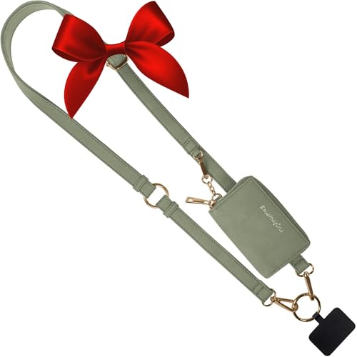 Save the Girls Clip and Go Brushed Vegan Phone Lanyard (Sage) - Crossbody Phone Case with Pouch, Adjustable and Removable Shoulder Strap and Wristlet Strap