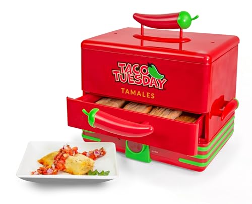 Nostalgia Taco Tuesday Tamales Steamer - Veggie, Pot Sticker, Hot Dog, Egg, & Hot Tamale 2 Tier Food Steamer – Red and Green