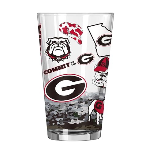 Logo Brands NCAA Georgia Bulldogs Native Icon 16 oz Pint Glass - Durable Glass With Local Landmark Design – Chip-Resistant Rim Drinkware For Fans, Tailgates, Home Bars & Everyday Use