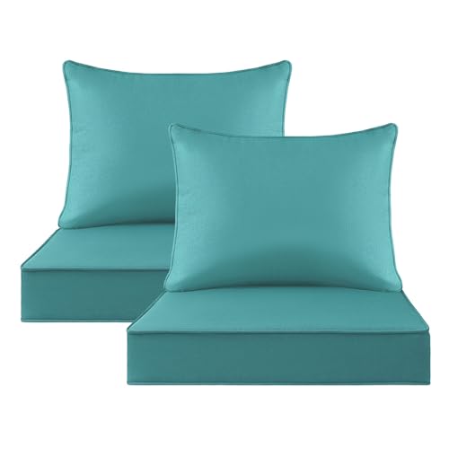 Unimatta Outdoor Patio Chair Cushions Set, 24" x 24", Set of 2, Water-Repellent, Fade Resistant, Deep Seat Bottom and Back Cushion for Backyard, Couch, Sofa and Patio Furniture, Turquoise