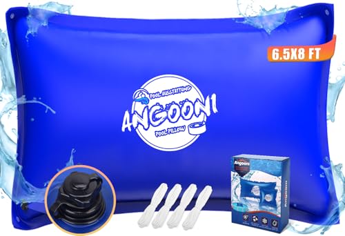 Angooni 6.5x8FT Heavy-Duty Pool Pillow with Sturdy Ropes - 0.4mm Thick PVC Pillows for Winter with Boston Dual-Inflation Valve - Above Ground Pools Closing Pillow, No Leakage