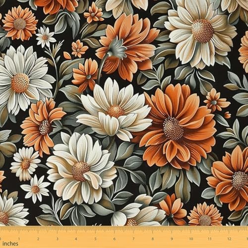 Erosebridal Vintage Daisy Fabric by The Yard Retro Flower Floral Upholstery Fabric Garden Plant Leaves Botanical Decorative Fabrics Victorian Groovy Flowers DIY Art,Orange Green,10 Yards