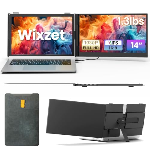 Wixzet Laptop Screen Extender, Ultra-Thin 14" FHD 1080P IPS Portable Monitor for 13"-17" Laptop, 1.3lbs Lightweight Dual Monitor Extender, Plug & Play for Wins/Mac/Android/Chrome
