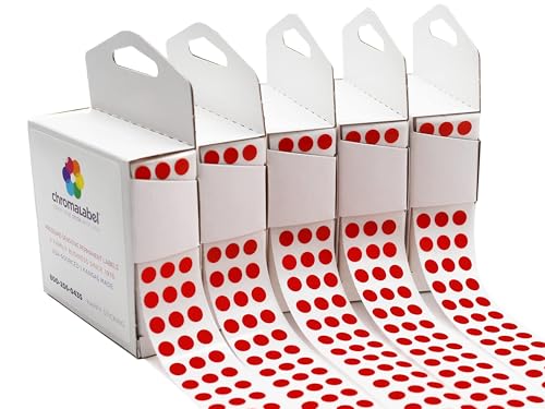 ChromaLabel 0.25 Inch Standard Red Permanent Adhesive Color Code Dot Label Kit, 1000 Stickers per Dispenser Box, Case of 5