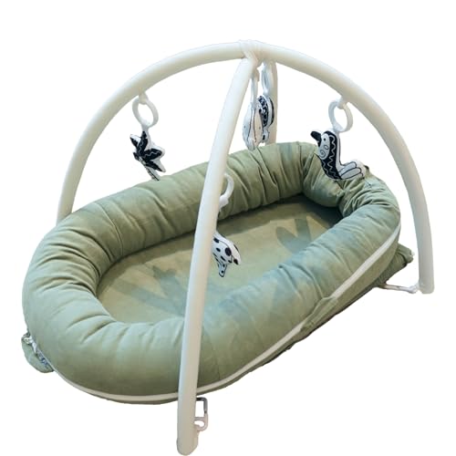 CooCooBaby Deluxe Infant Lounger, Play Gym, Newborn Essentials for Baby 0-12 Months, 100% Cotton (SageGreen + PlayArch)