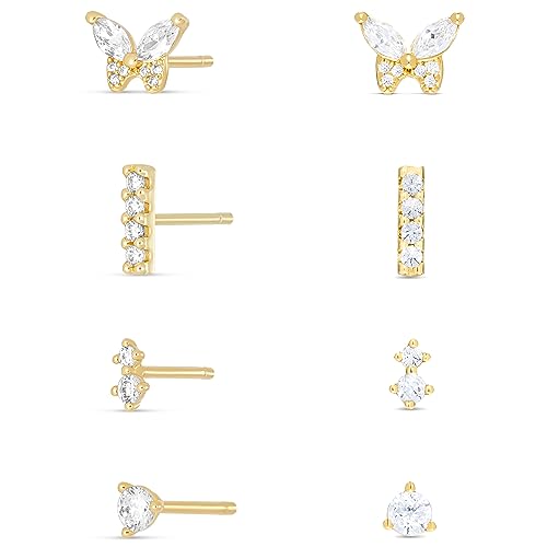 Amazon Essentials 14K Gold Plated Cubic Zirconia Butterfly and Bar Stud Earring Set
