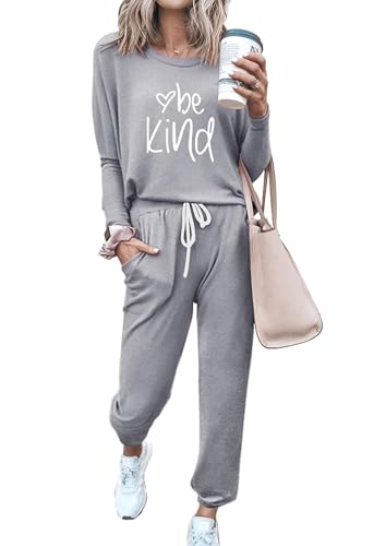 PRETTYGARDEN Women Fall 2 Piece Lounge Outfit Long Sleeve Tops High Waisted Jogger Pants Set Spring Travel Clothes Tracksuit (Patterned-grey,3X-Large)