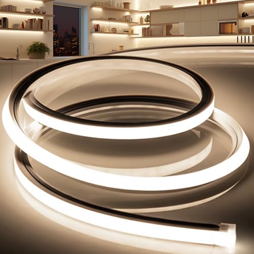 VOEWT LED Strip Lights Neutral White 4000K,65.6ft 110-120V Neon Rope Lights,Flexible Silicone Outdoor Waterproof Neon Strip Lights for Bedroom,Mirror,Kitchen Cabinet, Living Room,Halloween Decor