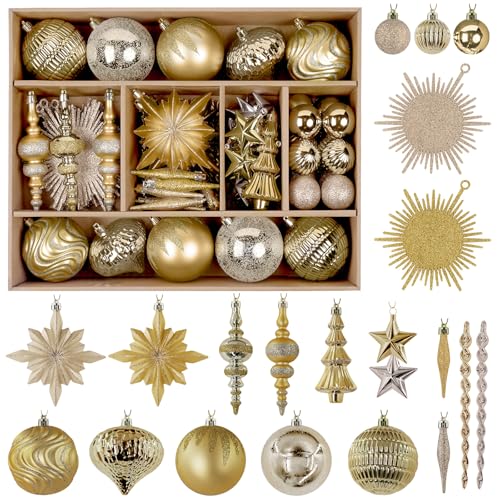 SHareconn 80pcs Christmas Balls Ornaments Set, Contemporary Light Luxury Gift Set, Shatterproof Plastic Decor for Xmas Tree Holiday Wedding Party Decorations with Hanging Strings, Dark and Light Gold