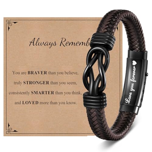 VNOX Love Knot Bracelet - Handmade Braided Leather Bracelet, Brown Leather Cuff, Infinity Knot Gift for Men, Husband, Boyfriend