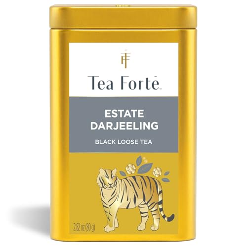 Tea Forte Estate Darjeeling Premium Loose Leaf Caffeinated Black Tea Blend Canister, Makes 35-50 Cups