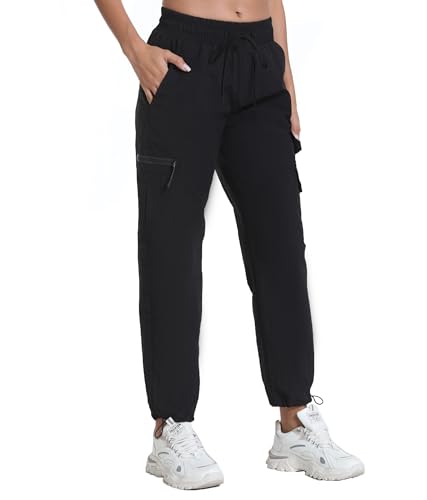 Rrosseyz Women's Hiking Pants with Pockets - Quick Drying Lightweight Water Resistant Joggers Cargo Pants for Travel Outdoor(Dark Black,M)