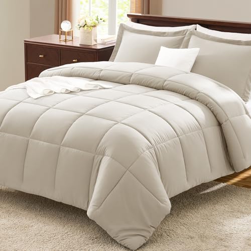 CozyLux King Size Comforter Set - Beige Comforter King Size, 3 Pieces Box Stitched Bed Set for All Seasons, Soft Lightweight Bedding Sets with 1 Down Alternative Comforter and 2 Pillow Shams