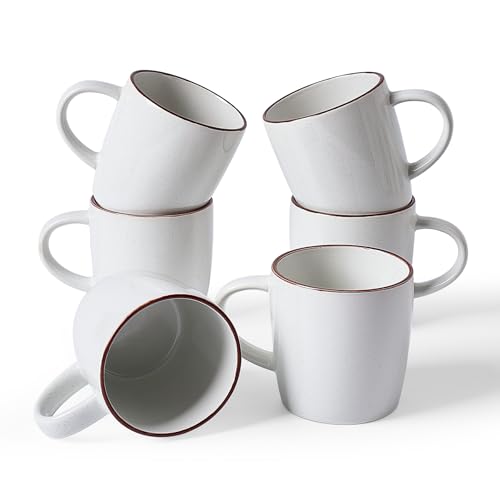 famiware Mercury Coffee Mugs 13 oz, Coffee Mugs Set of 6 with Handle, Cups for Latte, Hot Tea, Cappuccino, Mocha, Cocoa, White