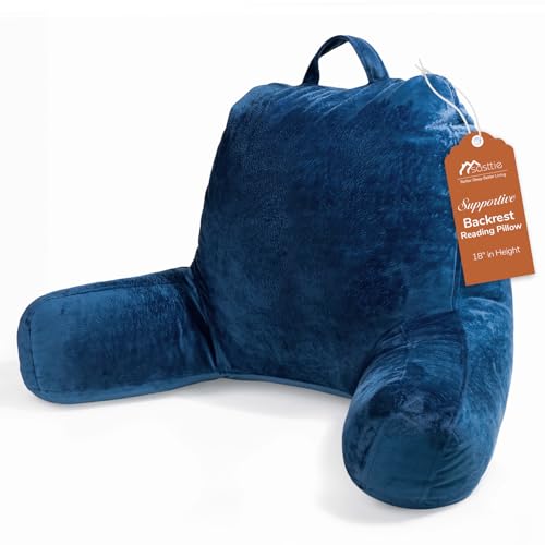 Sasttie Reading Pillow, Velvet Back Pillow for Bed Sitting Up, Adult Back-Rest Support Cushion with Arms for Sit Up on Couch, Sofa, and Floor, Dorm Essentials, Reading Accessories, Navy