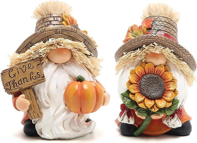 Hodao Fall Decorations for Home - Thanksgiving Gnome Figurines with Sunflower and Pumpkin, Resin Harvest Autumn Decor, Rustic Holiday Accent, for Family, Friends and Housewarming