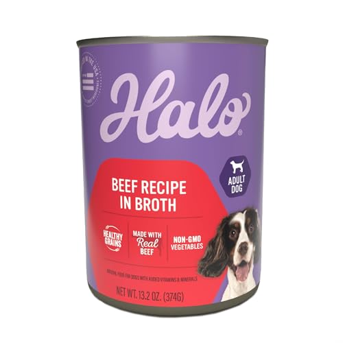 Halo Wet Dog Food Whole Beef Stew Recipe, Healthy Grains Real Meat Canned Dog Food, Meal or Topper, 13.2 Oz Can (Pack of 6)