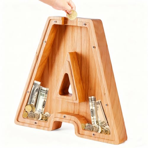 Bemaystar Letter Piggy Bank for Kids-Kids Piggy Bank for Boys Girls, 9 Inch Wooden Coin Bank Money Bank (A, 9 inch)
