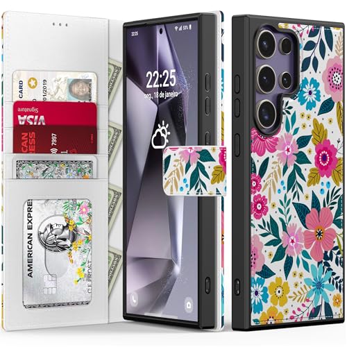 FUNMIKO for Samsung Galaxy S24 Ultra Case Wallet,Detachable Flip Folio Leather Cover,RFID Blocking 4 Card Slots Holder,Kickstand Function,Protective Phone Shell for Women,Blooming Flowers