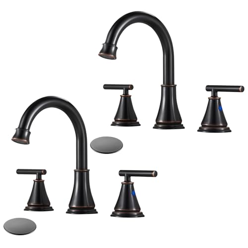 Fransiton Bathroom Sink Faucet 3 Hole,2-Pack Oil Rubbed Bronze Vanity Faucet for 6-16 Inch Widespread Lavatory Sink with Pop-Up Drain, 2 Handle