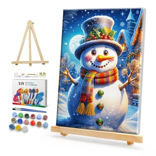 HeeBenor Framed Christmas Paint by Numbers Kit for Adults Beginner, Snowman Paint by Number with Easel, DIY Christmas Adult Paint by Number Kits on Canvas Framed 8x12 Inch for Home Wall Decor
