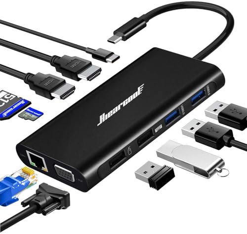 Hiearcool USB C Laptop Docking Station, 11-in-1 Type C Hub Multiport Adapter Dongle, USB C Dock with Dual HDMI VGA 100W PD Charging Gigabit Ethernet for Dell HP Lenovo Windows Laptops
