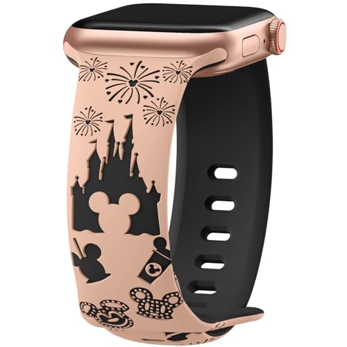 Cartoon Engraved Band Compatible with Apple Watch Bands 40mm 38mm 44mm 45mm 41mm 42mm 49mm Women, Two-Tone Cute Soft Silicone Sport Strap for iWatch Series 10/9/8/SE/7/6/5/4/3/2/1