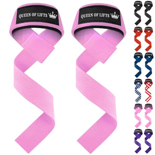 TECEUM Lifting Wrist Straps with Neoprene Padding Support – Pink – Queen of Lifts – Heavy Duty Wrist Workout Straps For Men and Women – Ideal for Powerlifting, Strength Training, Bodybuilding