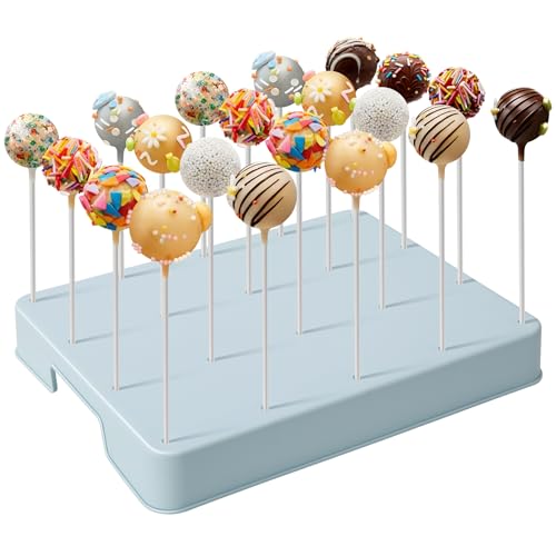 Daofvor 20-Hole Cake Pop Stand with Large Spacing and Taller Height, Easy to Use Upgraded Lollipop Holder & Cake Pop Holder with 100 Sticks, 100 Bags & 100 Ties, Dessert Table Display– Blue