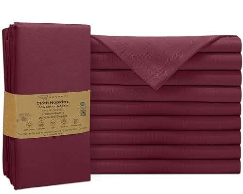 Ruvanti Premium Cloth Napkins Set of 12, 18x18 Inches, 100% Cotton, Washable, Soft & Absorbent, Perfect for Wedding, Christmas, Thanksgiving Dinners - Burgundy