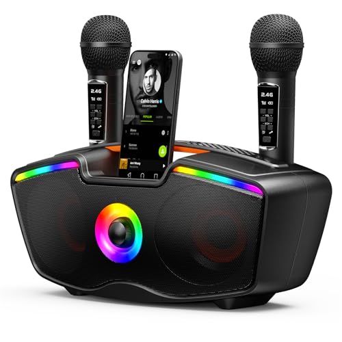 SORDA Bluetooth Karaoke Machine for Adults & Kids, 80W Portable Speaker with 2 Wireless Microphones, Echo Adjustment, Support USB/AUX/TF Card, for Outdoor/Indoor Gathering Gifts