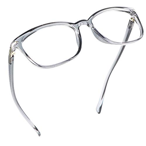 LifeArt Blue Light Blocking Glasses, Anti Eyestrain, Computer Reading Glasses, Gaming Glasses, TV Glasses for Women and Men, Anti Glare (Clear Grey, 4.75 Magnification)