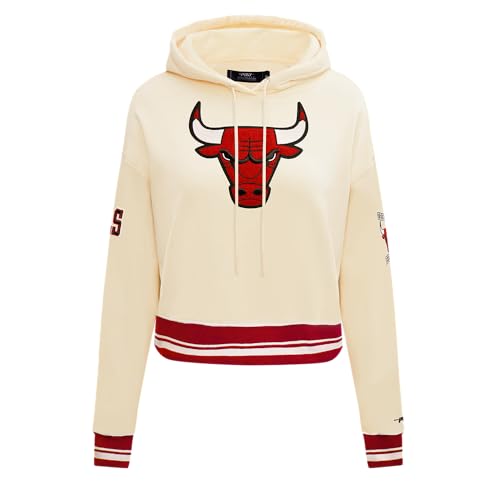 Pro Standard Womens NBA Chicago Bulls Retro Classics Cropped Pullover Hoodie Eggshell/Red L